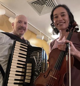 Nostalgic, street-style jazz and European folk songs from the early 1900's by Tomoko Iwamoto and Joe "Sonny" Barbato, violin and accordion duo.